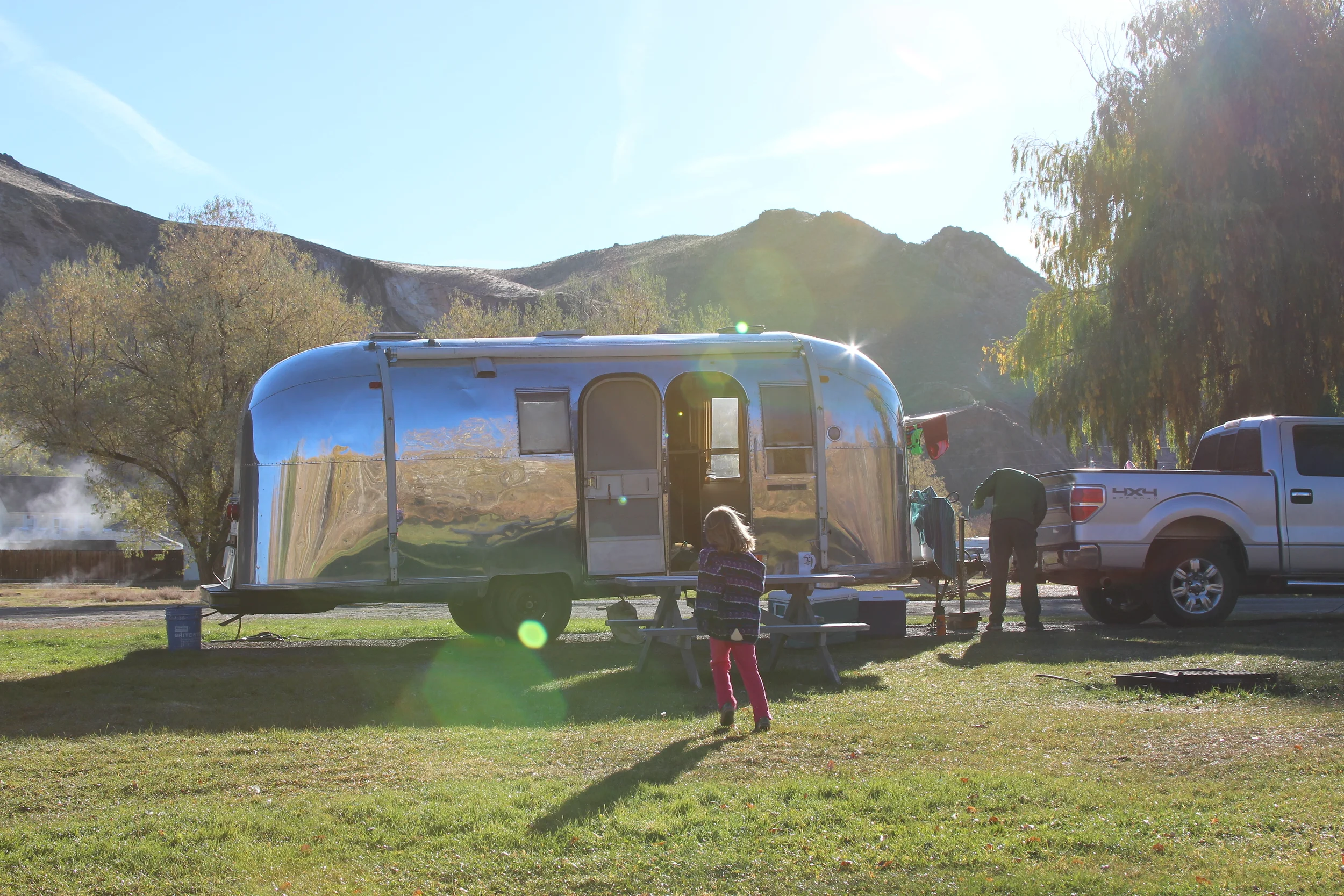 In all the trip was a huge success, the Airstream did not leak when it rained a bit Saturday night, she pulled like a dream getting about 14 miles to the gallon, almost everything worked like the awning we happily unfurled for the first time and we all slept like babies. I think I've fallen back in love, so maybe we'll keep her,after all. But if we're going to keep her we need a good name. I like Silver Lining … suggestions?