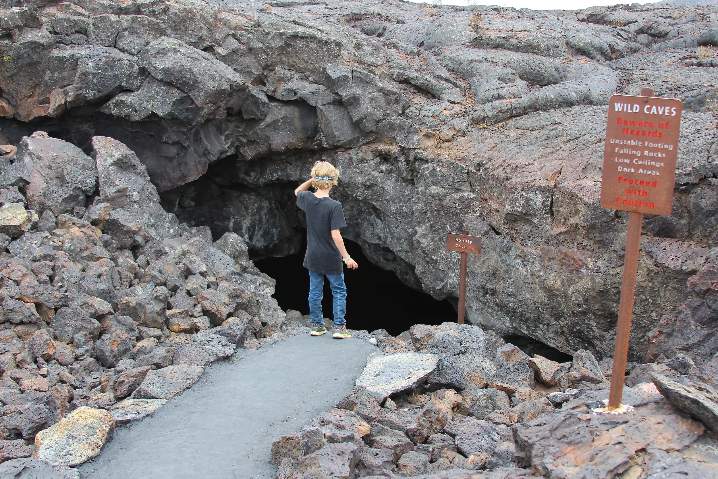 Oscar assesses Beauty Cave, Craters of the Moon National Park
